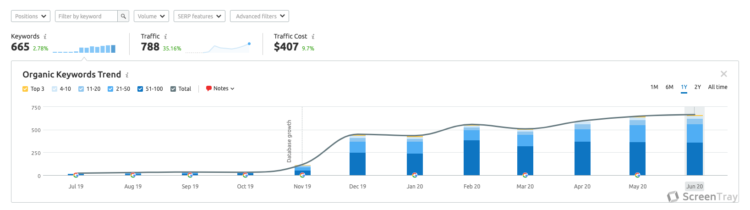 根據(jù) Semrush 的說(shuō)法,這顯然是事實(shí),高質(zhì)量的公司博客等于在 Google 的 TOP 搜索結(jié)果中有更多的詞組。